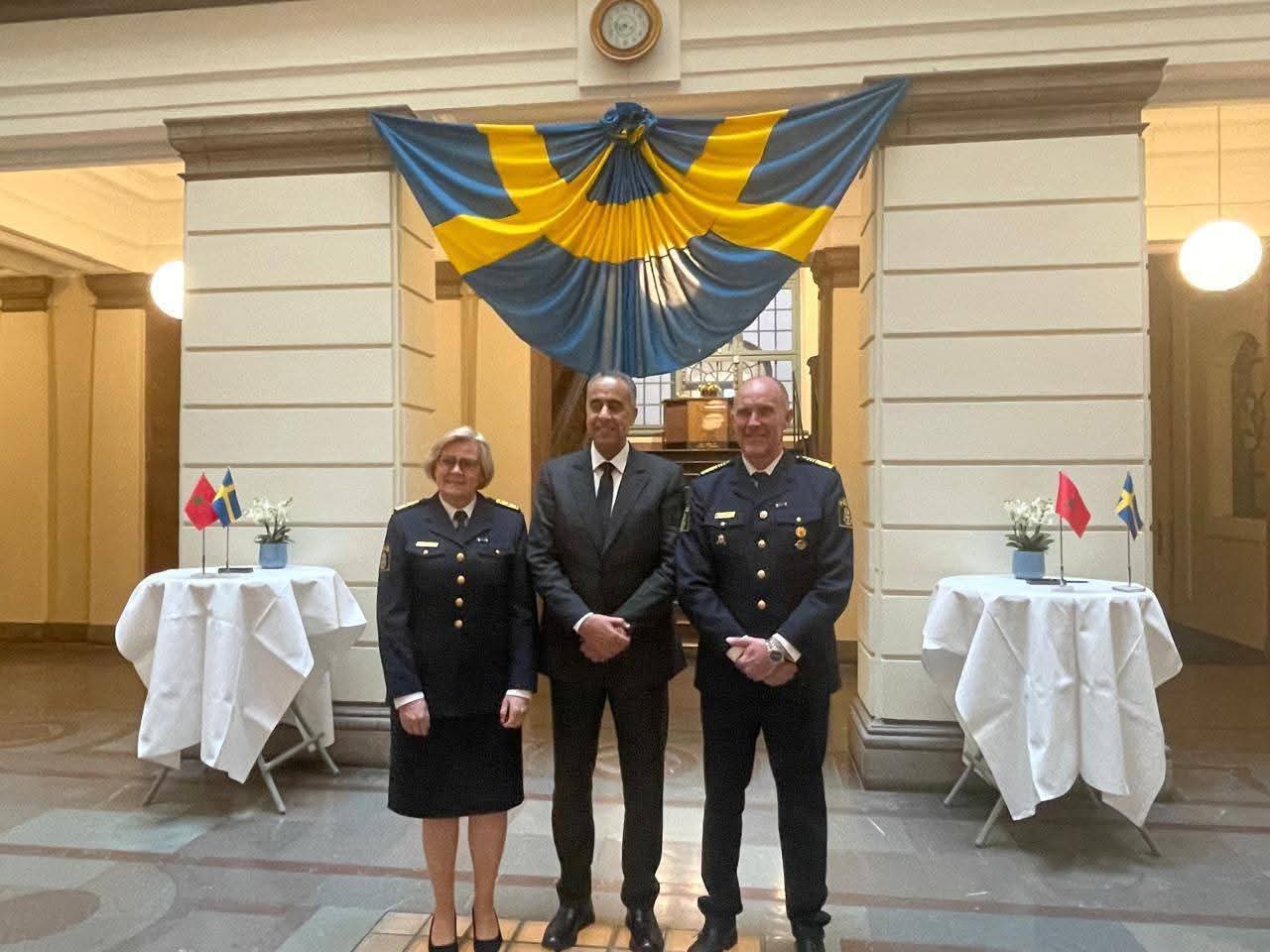 وتشكل هذه الزيارة دليلاً واضحاً على أهمية التعاون الأمني الثنائي بين المملكتين المغربية والسويدية، كشريكين فاعلين في الجهود الدولية لتعزيز الأمن والاستقرار، كما تؤكد أيضا العزيمة المشتركة من أجل مواصلة تدعيم التعاون الأمني وتوطيد التنسيق الاستخباراتي في مواجهة كافة التهديدات التي تحدق بأمن البلدين.