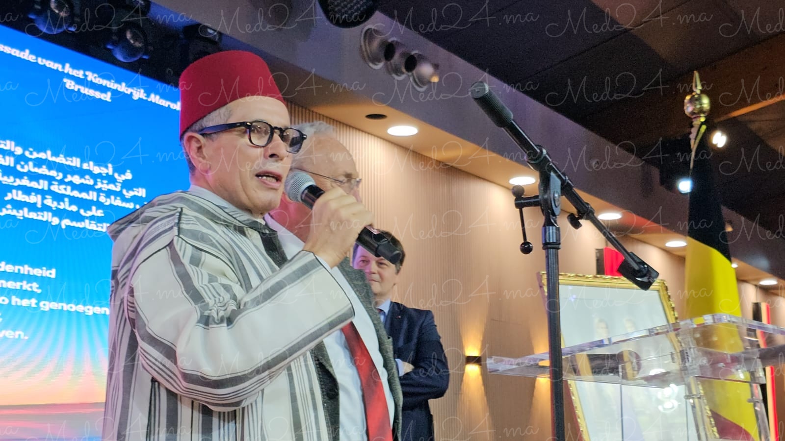سفير الرباط في بروكسل،الخبير الدبلوماسي واحد رجالات المغرب الابرار،الدطتور محمد عامر،عبر في كلمة عن الدور البارز للنموذج المغربي القائم على الاعتدال والسلام والوسطية، والدور المحوري للمؤسسة الملكية،باعتبارها إمارة المؤمنين، في ضمان حرية العبادة وتعزيز الحوار بين الأديان؛ مما يجعل المملكة نموذجا استثنائيا في تدبير الشأن الديني على المستوى الإقليمي.